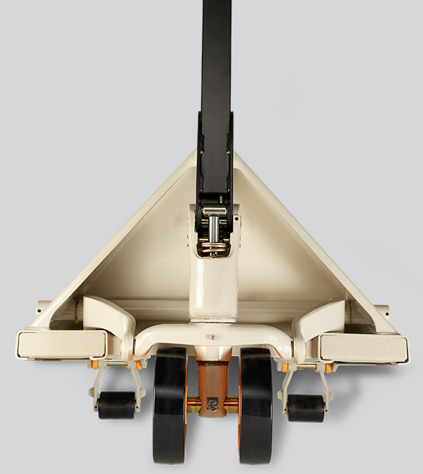 PTH50 manuel transpalette bulunan çift yük tekerlekleri pürüzlü yüzeyler için ve paletin alt kısmından giriş için en ideal seçimdir
