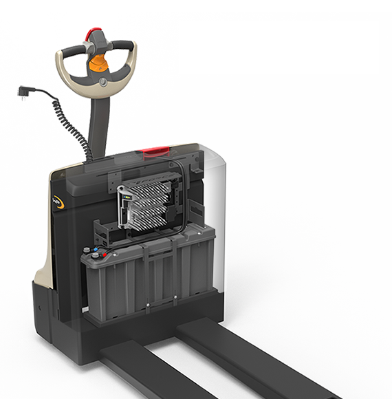 - Düşük toplam yüksekliği sayesinde elektrikli transpalet, kamyonun altındaki bir kutuda kolayca saklanabilir