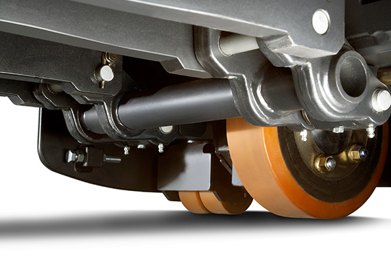 Öncü bir sönümleme sistemi şasi, sürücü kabini ve bileşenler üzerindeki şok yüklerini azaltır. Sürücü modülünün sızdırmaz, esnek süspansiyonu, tahrik tekerleğinin aşınmasından kaynaklanan yeniden ayarlama ihtiyacını ortadan kaldırır.